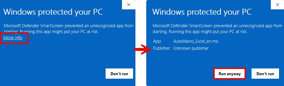 If you see this message box, click “More info” and then click “Run anyway” to run the installer.